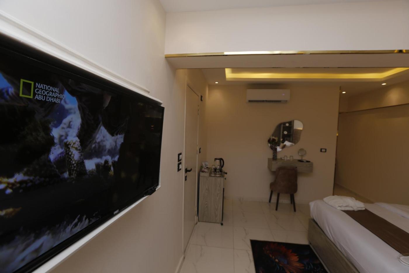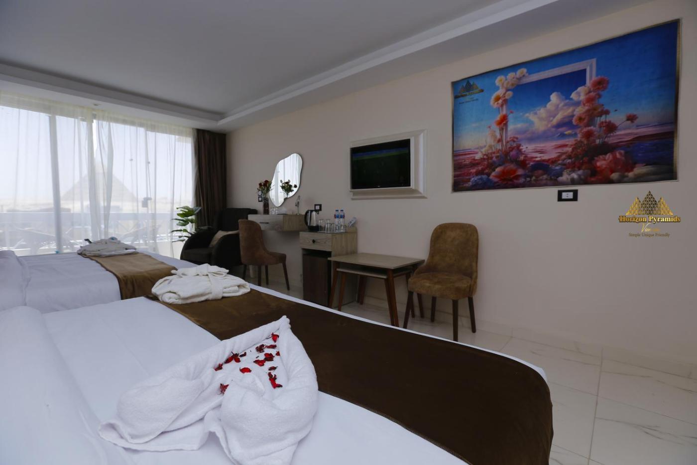 Double Room with Pyramids View. Providing free toiletries, this double room includes a private bathroom with a walk-in shower, a hairdryer and slippers. The spacious air-conditioned double room provides a flat-screen TV with cable channels, a washing machine, a private entrance, a minibar as well as garden views. The unit offers 1 bed. ;