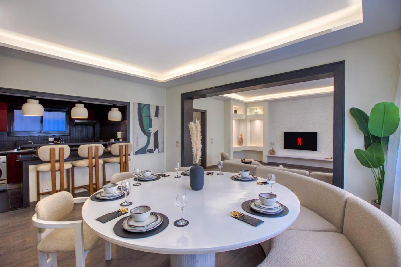 Three-Bedroom Apartment. Featuring 1 bedroom, this spacious apartment offers 2 bathrooms with a bath, a seating area and terraceyou can relax. In the fully equipped kitchen, guests will find a refrigerator, a dishwasher, an oven and a microwave. The air-conditioned apartment offers a flat-screen TV with streaming services, a washing machine, soundproof walls, a tea and coffee maker as well as lake views. The unit has 1 bed.