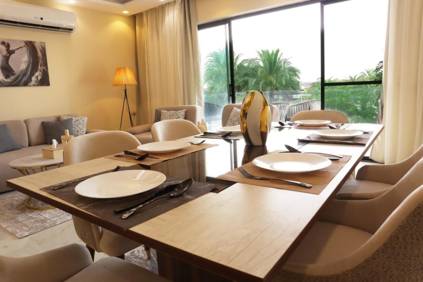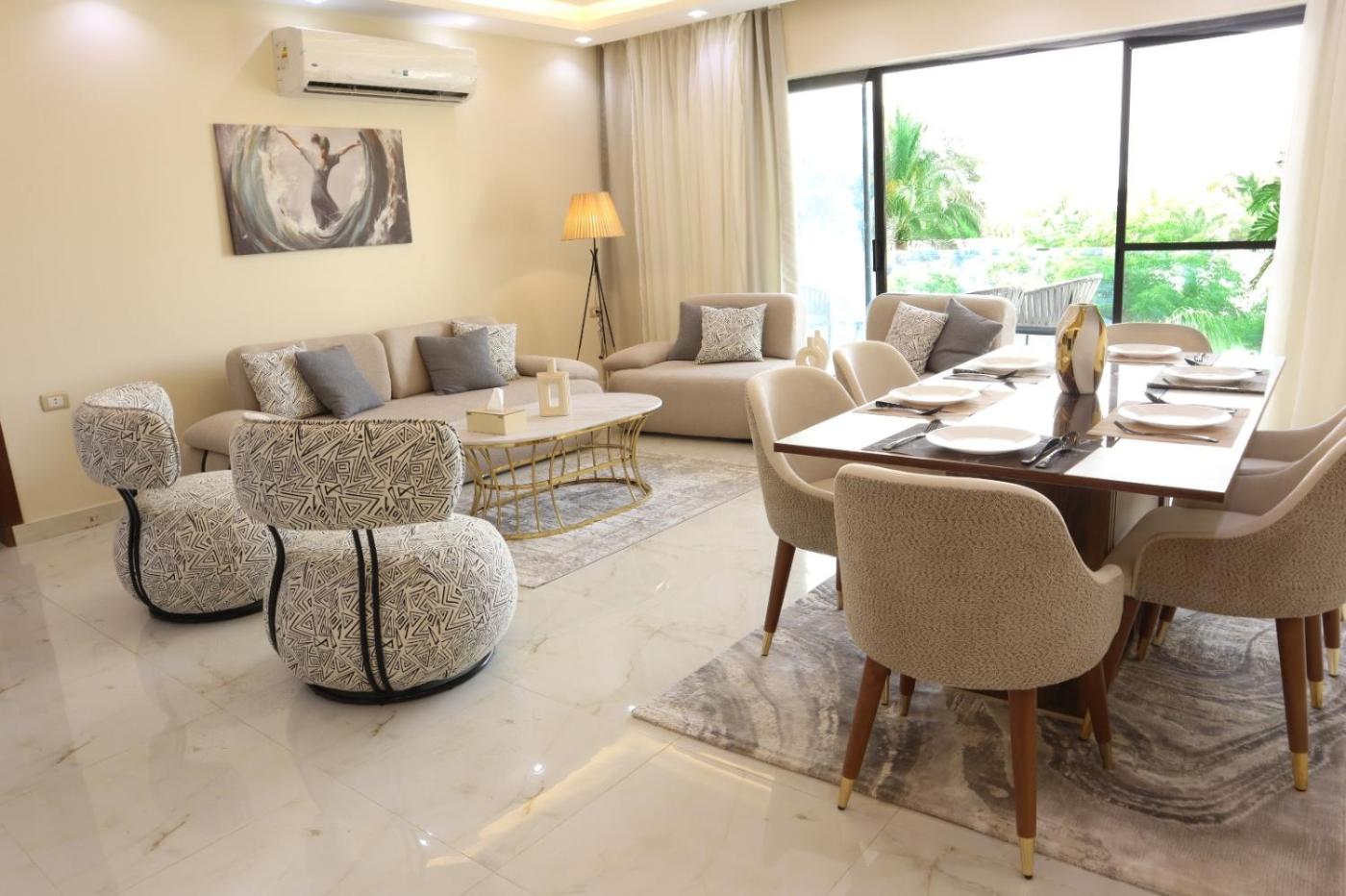 Apartment 2 is situated in the New Cairo City district of New cairo, 29 km from Cairo Intl Conference Centre, 31 km from Al-Azhar Mosque and 31 km from El Hussien Mosque. The property has garden and city views, and is 26 km from City Stars. There is a terrace and guests can make use of free WiFi, free private parking and an electric vehicle charging station.